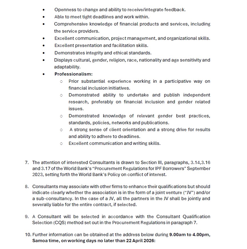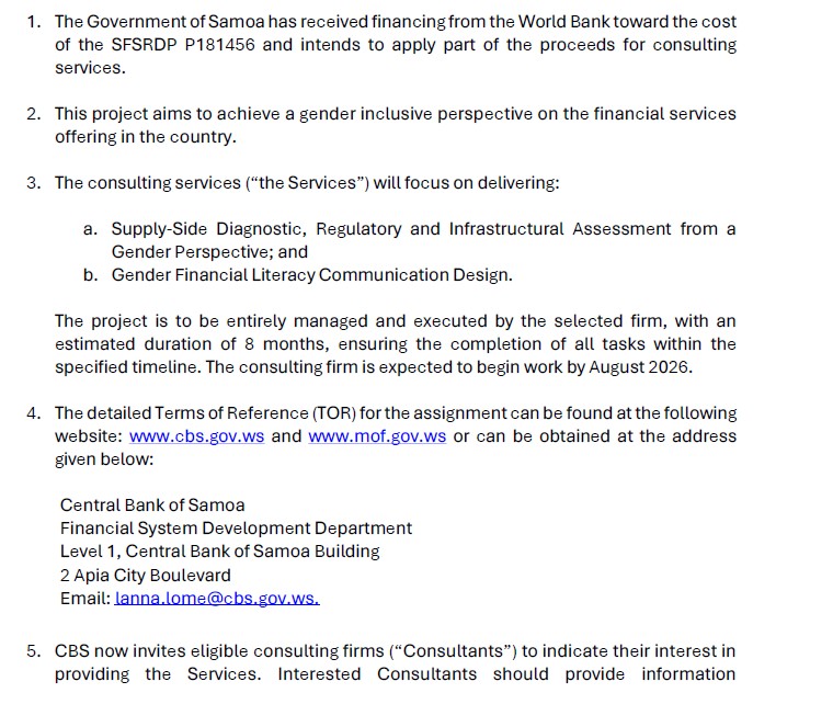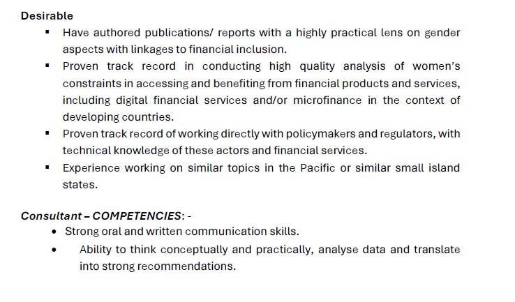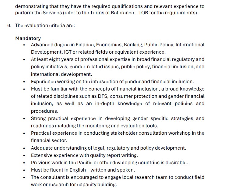 Request For Expression of Interest: Gender Inclusive Finance Consultant